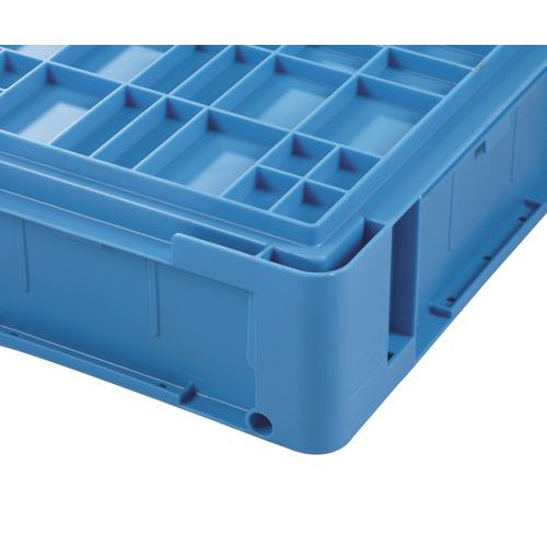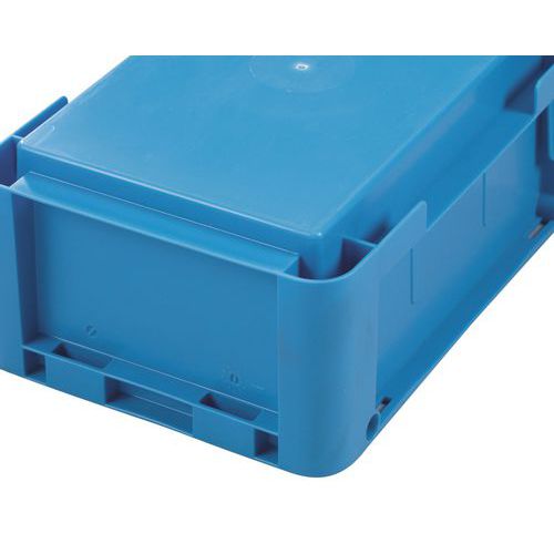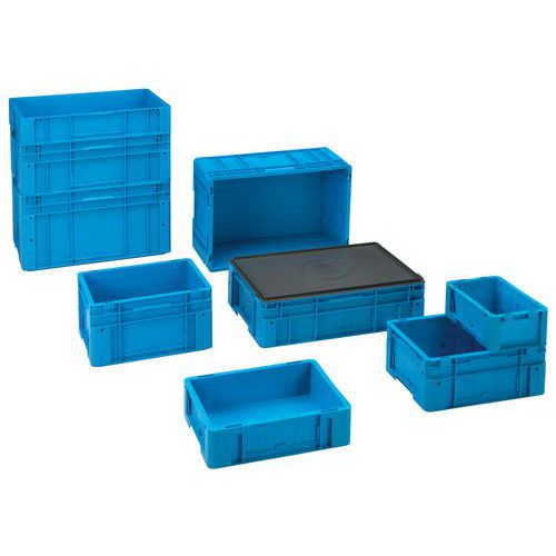 Conforme aux dimensions norme Europe. Excellente résistance aux chocs et au gerbage grâce aux côtés et fonds renforcés et angles double paroi. Bac Eurotec avec poignées ergonomiques pour transport manuel aisé. Adapté à différentes manutentions automatisées : robot, convoyeur, magasin et installation de transport. Identification facile par porte-étiquette.