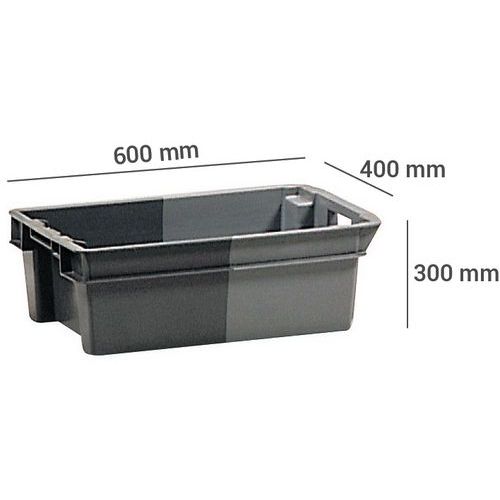 Bac gerbable aller et retour, Capacité: 50 L, Hauteur hors tout: 300 mm, Largeur hors tout: 400 mm Bac gerbable aller et retour, Capacité: 50 L, Hauteur hors tout: 300 mm, Largeur hors tout: 400 mm