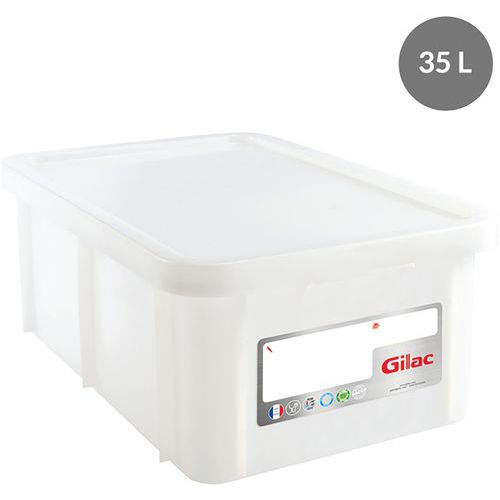 Bac plastique alimentaire HACCP 400x300 et 600x400 rectangulaire. . Pour les gros volumes de stockage, le couvercle supporte des charges élevées. Bac polyvalent. Cartouche d'identification réinscriptible pour le suivi des stocks. Design ne présentant aucune zone de rétention. Lavable en machine. Poignées en retrait pour une meilleure manipulation. Empilable sans couvercle.Compatible avec tous les socles 4 et 6 roues GILAC.