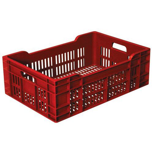 Caisse ajourée empilables Idéale pour le stockage des fruits et des légumes. Aération du contenu. Très résistante en utilisation intensive. Poignées intégrées ergonomiques pour une préhension facile et pratique. Couvercles caisses pleines adaptés également aux caisses ajourées. Les caisses ajourées 600x400 sont compatibles avec les socles 4 et 6 roues GILAC. Couvercles caisses pleines adaptés également aux caisses ajourées. Les caisses ajourées 600x400 sont compatibles avec les socles 4 et 6 roues GILAC.
