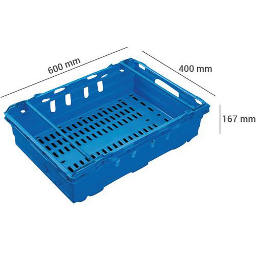| Intitulé du produit | Bac gerbable Maxinest®, Capacité: 28 L, Hauteur hors tout: 167 mm, Largeur hors tout: 400 mm |
