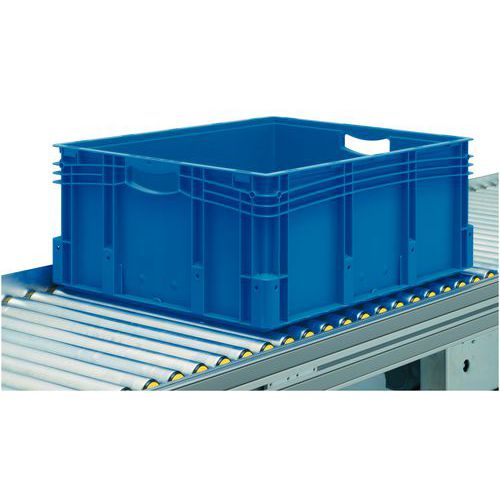 Bac gerbable très robuste grâce à son double fond. Manutention aisée avec poignées ergonomiques ouvertes. Grande stabilité au gerbage grâce à ses rebords renforcés. Bac haute résistance aux fortes variations de température. Fabriqué en Allemagne Charge maxi (kg) : 200