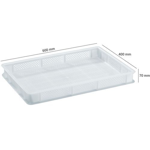 | Intitulé du produit | Bac norme Europe parois et fond ajourés -Longueur 600 mm, Capacité: 12 L, Gerbable: oui |