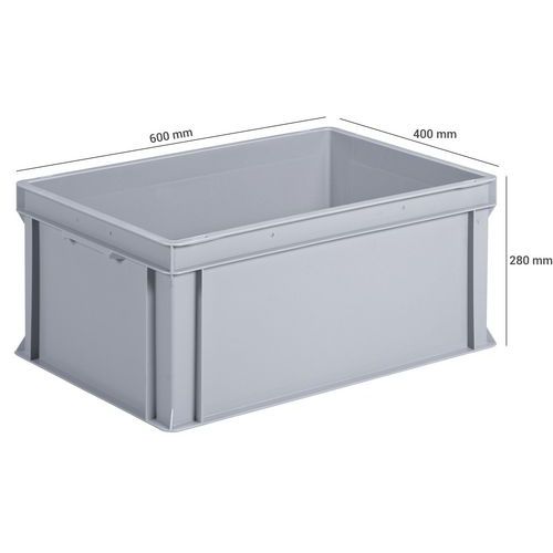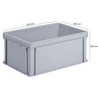 | Intitulé du produit | Bac norme Europe plein, Capacité: 53 L, Gerbable: oui, Hauteur hors tout: 280 mm, Largeur hors tout: 400 mm |