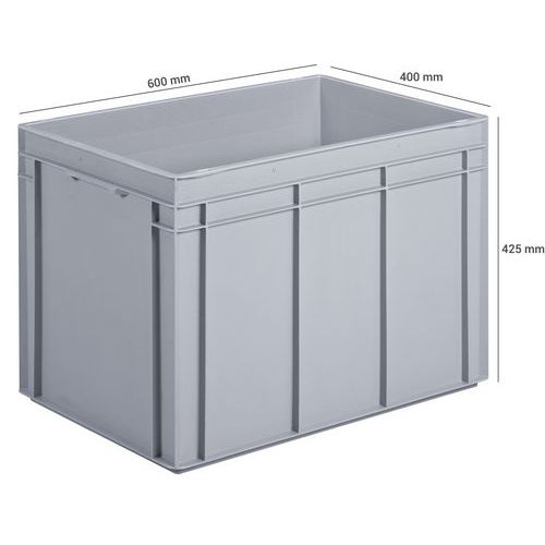 | Intitulé du produit | Bac norme Europe plein, Capacité: 84 L, Gerbable: oui, Hauteur hors tout: 425 mm, Largeur hors tout: 400 mm |