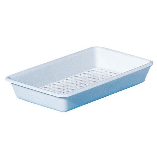 Bac plat multi-usages alimentaires : préparation, marinade, décantation, décongélation, stockage d'échantillons témoins... Spécialement étudié pour l'industrie alimentaire. Encombrement minimal par emboîtement à vide. format parfaitement adapté aux réfrigérateur.