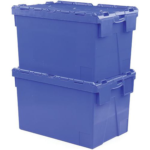 Bac plein avec couvercle solidaire à charnière pour une bonne protection des contenus.