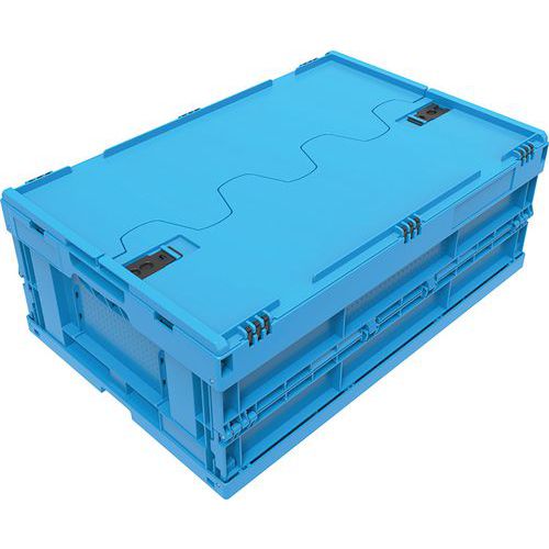 Équipé de charnières renforcées et d'un rebord sécurisé pour le gerbage.
