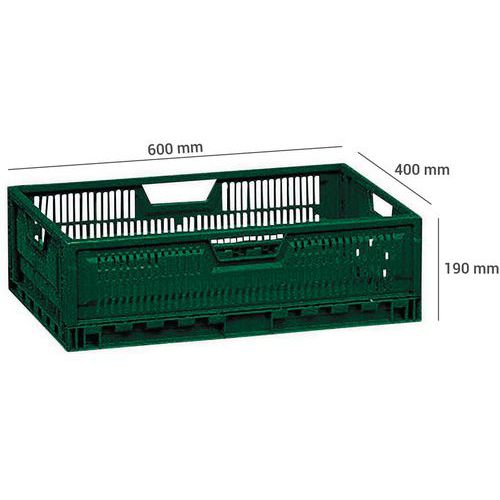 | Intitulé du produit | Bac pliant PreLog®, Capacité: 36 L, Hauteur hors tout: 190 mm, Largeur hors tout: 400 mm |