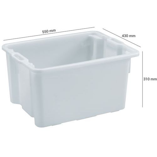 | Intitulé du produit | Bac rectangulaire gerbable emboîtable, Capacité: 50 L, Hauteur hors tout: 310 mm, Largeur hors tout: 430 mm |