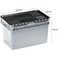 | Intitulé du produit | Bac standard à couvercle intégré, Capacité: 60 L, Hauteur hors tout: 374 mm, Largeur hors tout: 400 mm |