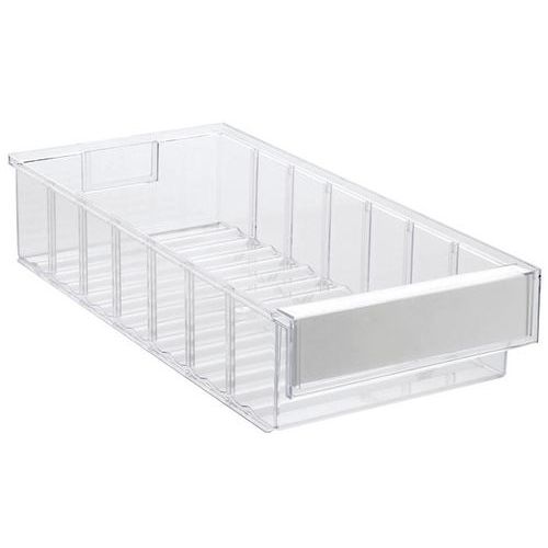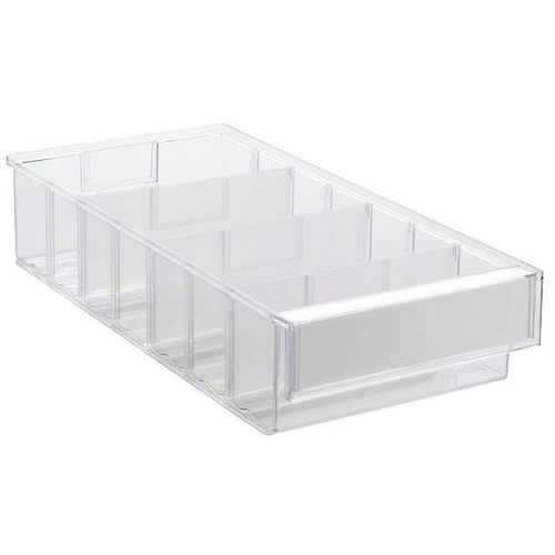 Bacs d’étagère conçus pour s'adapter à toutes les tablettes, armoires, supports rotatifs et postes de travail industriels standard. Notre gamme de produits comprend 11 bacs de différentes tailles. Disponibles dans les profondeurs suivantes : 3, 4, 5 et 6 mm. Chaque tiroir porte une étiquette et un couvercle de protection. Matériaux: PS = polystyrène transparent : température d'utilisation de -4 °C à +55 °C. PP = polypropylène coloré : température d'utilisation de -2 °C à +75 °C. Inaltérable aux huiles et à la plupart des acides et solvants.