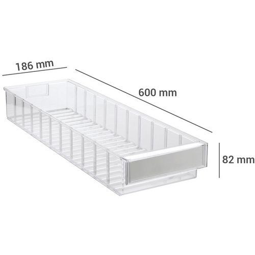 Bac-tiroir, Capacité: 6.5 L, Hauteur hors tout: 82 mm, Largeur hors tout: 186 mm, Longueur hors tout: 600 mm Bac-tiroir, Capacité: 6.5 L, Hauteur hors tout: 82 mm, Largeur hors tout: 186 mm, Longueur hors tout: 600 mm