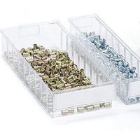 Bacs d’étagère conçus pour s'adapter à toutes les tablettes, armoires, supports rotatifs et postes de travail industriels standard. Notre gamme de produits comprend 11 bacs de différentes tailles. Disponibles dans les profondeurs suivantes : 3, 4, 5 et 6 mm. Chaque tiroir porte une étiquette et un couvercle de protection. Matériaux: PS = polystyrène transparent : température d'utilisation de -4 °C à +55 °C. PP = polypropylène coloré : température d'utilisation de -2 °C à +75 °C. Inaltérable aux huiles et à la plupart des acides et solvants.