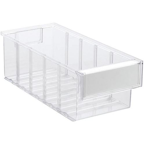 Bacs d’étagère conçus pour s'adapter à toutes les tablettes, armoires, supports rotatifs et postes de travail industriels standard. Notre gamme de produits comprend 11 bacs de différentes tailles. Disponibles dans les profondeurs suivantes : 3, 4, 5 et 6 mm. Chaque tiroir porte une étiquette et un couvercle de protection. Matériaux: PS = polystyrène transparent : température d'utilisation de -4 °C à +55 °C. PP = polypropylène coloré : température d'utilisation de -2 °C à +75 °C. Inaltérable aux huiles et à la plupart des acides et solvants.