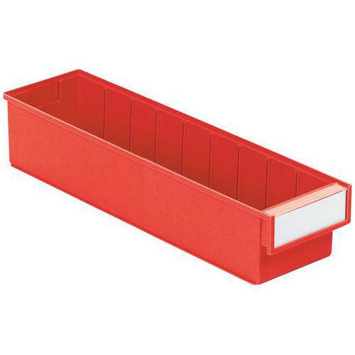 Bacs d’étagère conçus pour s'adapter à toutes les tablettes, armoires, supports rotatifs et postes de travail industriels standard. Notre gamme de produits comprend 11 bacs de différentes tailles. Disponibles dans les profondeurs suivantes : 3, 4, 5 et 6 mm. Chaque tiroir porte une étiquette et un couvercle de protection. Matériaux: PS = polystyrène transparent : température d'utilisation de -4 °C à +55 °C. PP = polypropylène coloré : température d'utilisation de -2 °C à +75 °C. Inaltérable aux huiles et à la plupart des acides et solvants. Fabriqué en UE