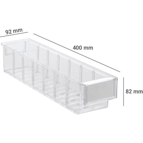 Bac-tiroir, Capacité: 1.9 L, Hauteur hors tout: 82 mm, Largeur hors tout: 92 mm, Longueur hors tout: 400 mm Bac-tiroir, Capacité: 1.9 L, Hauteur hors tout: 82 mm, Largeur hors tout: 92 mm, Longueur hors tout: 400 mm
