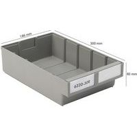 Bacs pour étagère. S’intègrent facilement dans les systèmes de rayonnages standard. Trois profondeurs : 300 mm, 400 mm et 500 mm. Existent également en version empilable. Les bacs ont des parois droites. Les étiquettes en carton sont livrées de série. Séparateurs transversaux transparents (polystyrène recyclé).