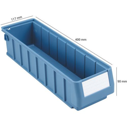 Multiples possibilités de cloisonnement intérieur. Bac-tiroir indéformable résistant aux huiles et graisses. Gerbable avec bacs série RK de même largeur. Fabriqué en Allemagne Charge maxi (kg) : 10 kg