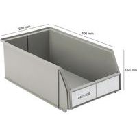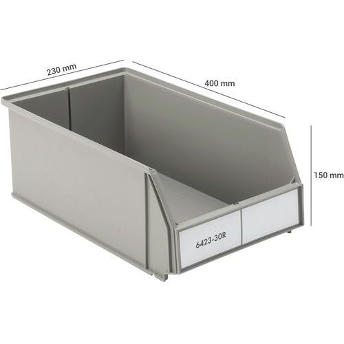 Bacs à bec, séparables longitudinalement. Largeur optimale pour les systèmes de rayonnages métriques. Les étiquettes adhésives sont livrées de série. Séparations longitudinales (polypropylène recyclé) disponibles en accessoires. Étiquette en carton avec protection adhésive (S23) à commander séparément, unité 12 pièce.