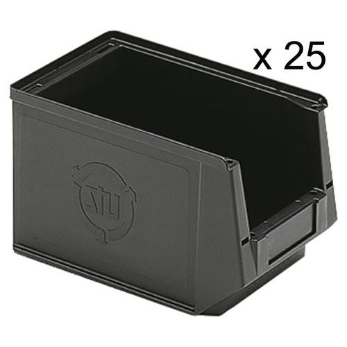 Bacs à bec Silafix en matière conductrice disponibles dans différentes dimensions et différentes couleurs, pouvant recevoir un couvercle, un film de protection et une étiquette en papier selon les versions.