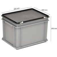 Bacs à couvercle RAKO gris, Capacité: 24 L, Gerbable: oui, Hauteur hors tout: 295 mm Bacs à couvercle RAKO gris, Capacité: 24 L, Gerbable: oui, Hauteur hors tout: 295 mm