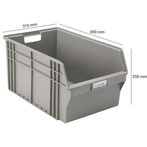 | Intitulé du produit | Bacs de manutention ReBOX, Capacité: 22.6 L, Hauteur hors tout: 250 mm, Largeur hors tout: 310 mm |