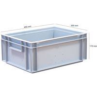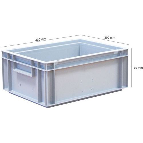 Bacs gerbables Norme Europe 400x300 mm disponibles dans différentes hauteurs. Les bacs disposent parois et fond soit ajourés soit pleins ainsi que de poignées trous ou coquilles. Fabriqué en France
