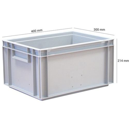 Bacs gerbables Norme Europe 400x300 mm disponibles dans différentes hauteurs. Les bacs disposent parois et fond soit ajourés soit pleins ainsi que de poignées trous ou coquilles. Fabriqué en France