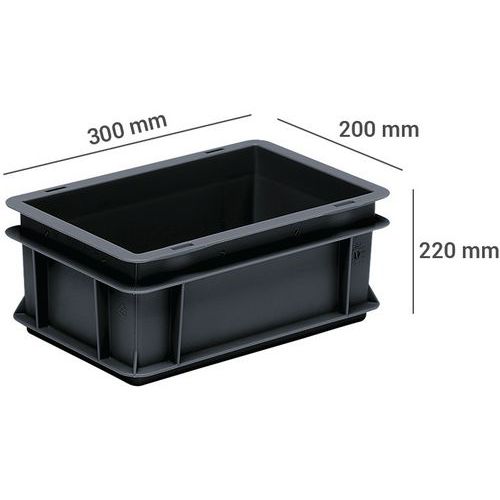 Bacs RAKO ESD, Capacité: 9 L, Gerbable: oui, Hauteur hors tout: 220 mm, Largeur hors tout: 200 mm Bacs RAKO ESD, Capacité: 9 L, Gerbable: oui, Hauteur hors tout: 220 mm, Largeur hors tout: 200 mm