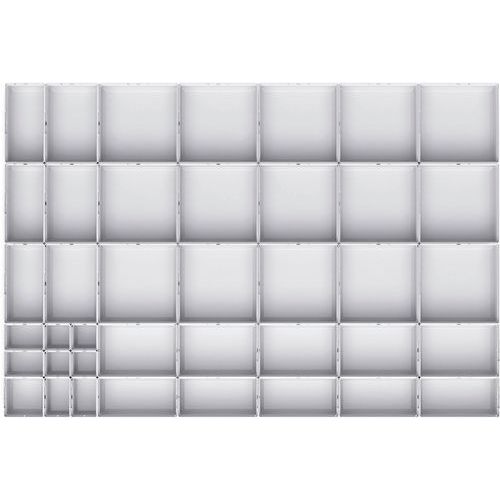 | Intitulé du produit | Bacs Rangement Cubio EKK07100 40 Compartiments, Largeur: 1050 mm, Profondeur: 750 mm, Hauteur: 100 mm |