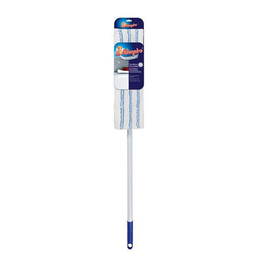 | Intitulé du produit | Balai téléscopique combiné avec housse microfibre, Coloris: Bleu/gris, Longueurs: 44 cm, Largeur: 14 cm |