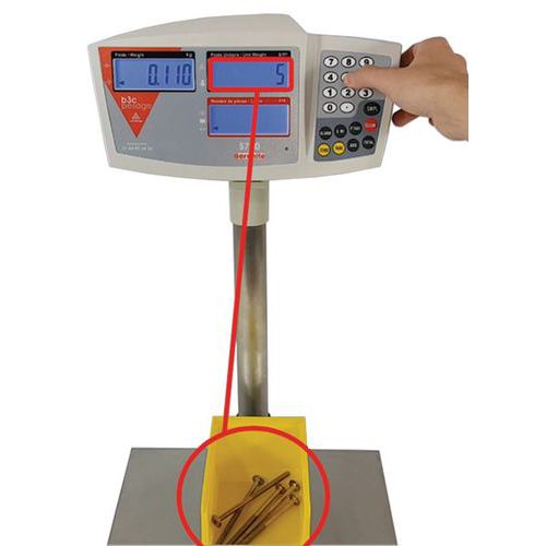 - Avec 3 afficheurs séparés (Poids brut/net, Poids de référence et Nombre total de pièces).