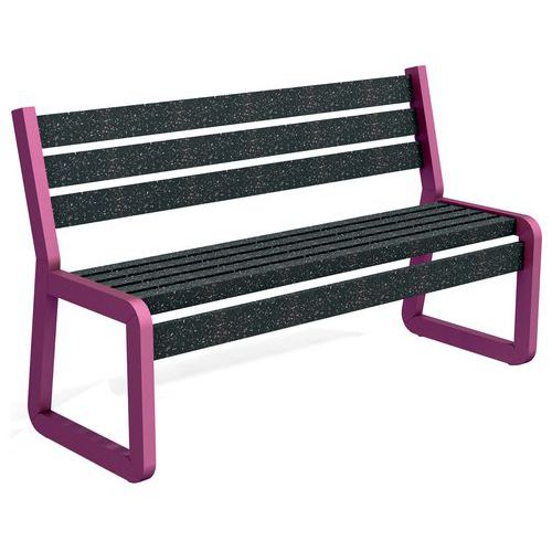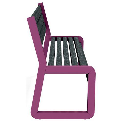 Banc Chardonnay primaire en Ipra, matière produite à partir de plastiques multi composants. Résistance au gel, à la mousse, aux UV, lisse sans risque d'écharde, traitement anti tags, nettoyage à l'eau. Structure aluminium laqué : métal léger qui a une grande résistance à la corrosion. Sans entretien, sans traitement, imputrescible. Durée de vie accrue par rapport aux modèles en bois et en plastiques. Garantie : 25 ans sur l'Ipra, 10 ans sur l'alu Fabrication à partir de matières recyclées : canettes, pots de fleurs, aluminium... Classement au feu M4. Kit de fixation fourni