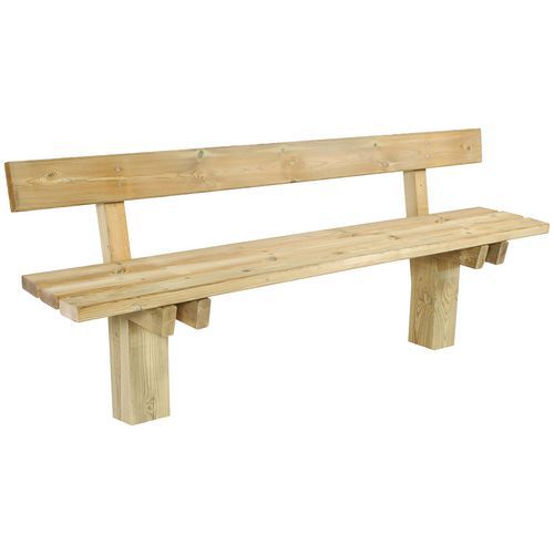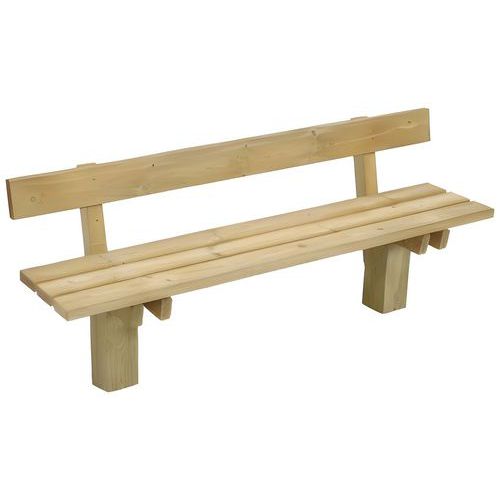 Banc Ouessant Manutan Expert En pin traité Scellement direct, pieds rallongés de 30 cm Livré avec hayon.