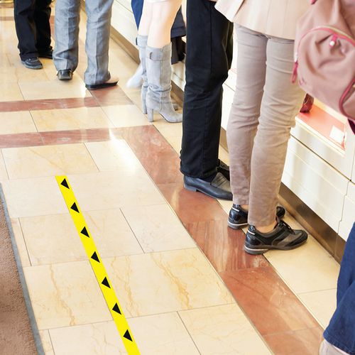 | Intitulé du produit | Bande adhésive de distanciation sociale avec flèches, Matériau: PVC, Longueur: 1000 mm, Coloris: Jaune |