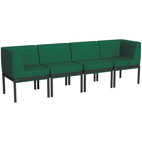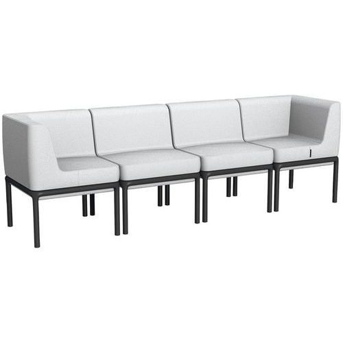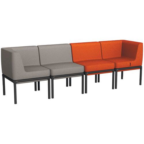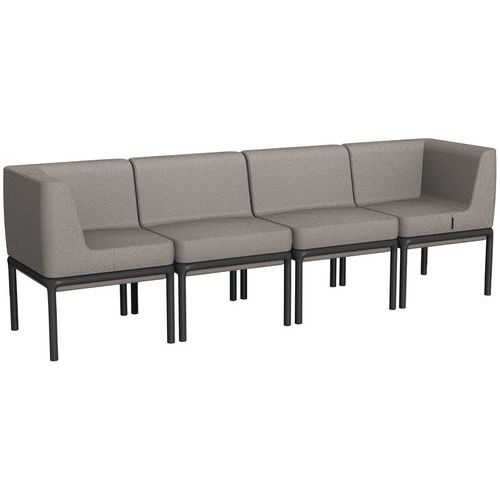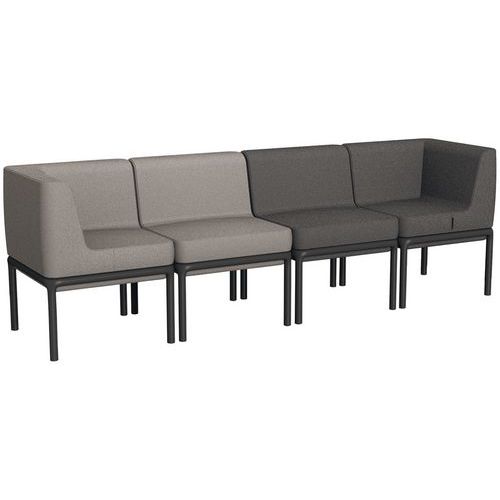 La gamme est construite sur le principe d’une structure métal carrée en 60x60 cm dans laquelle viennent s’insérer plusieurs types de coussins d’assise.