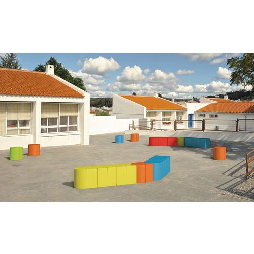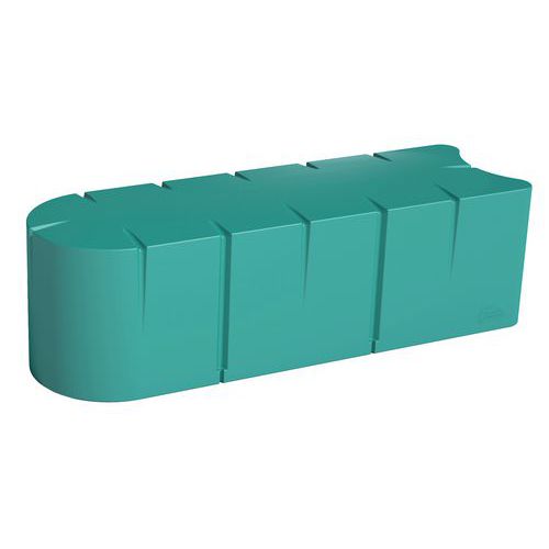 En polyéthylène rotomoulé teinté dans la masse, épaisseur moyenne 7 mm. Implantation à l'intérieur ou à l'extérieur car le polyéthylène utilisé résiste aux intempéries et aux UV (température : -30°C/+ 60° C). Entretien : nettoyeur haute pression (1 fois/an). Possibilité d'ajouter le pouf ovale CONNEXIO et/ou le pouf rond CONNEXIO. 10 coloris standards. Module à lester avec du sable (non inclus) ou à fixer au sol avec des tiges filetées RGM8, L : 0,11 m (4 zones d'ancrage) en option. Autres RAL standards sur demande. Fabriqué en France Garantie client : 5 ans