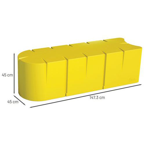 En polyéthylène rotomoulé teinté dans la masse, épaisseur moyenne 7 mm. Implantation à l'intérieur ou à l'extérieur car le polyéthylène utilisé résiste aux intempéries et aux UV (température : -30°C/+ 60° C). Entretien : nettoyeur haute pression (1 fois/an). Possibilité d'ajouter le pouf ovale CONNEXIO et/ou le pouf rond CONNEXIO. 10 coloris standards. Module à lester avec du sable (non inclus) ou à fixer au sol avec des tiges filetées RGM8, L : 0,11 m (4 zones d'ancrage) en option. Autres RAL standards sur demande. Fabriqué en France Garantie client : 5 ans