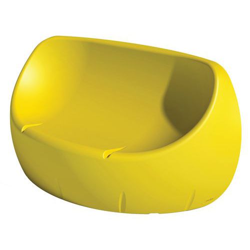 Assise très confortable. En polyéthylène rotomoulé teinté dans la masse, épaisseur moyenne 7 mm. Implantation à l'intérieur ou à l'extérieur car le polyéthylène utilisé résiste aux intempéries et aux UV (température : -30°C/+ 60° C). Entretien : nettoyeur haute pression (1 fois/an). 10 coloris standards. Module à lester avec du sable (non inclus) ou à fixer au sol avec des platines de fixation (4 zones d'ancrage) + tiges filetées en option. Autres RAL standards sur demande. Fabriqué en France Garantie client : 5 ans