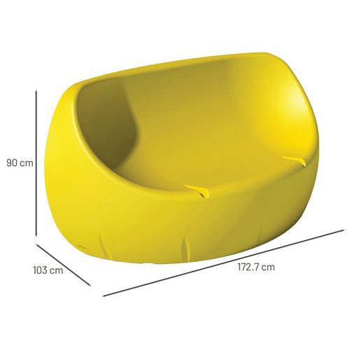 Assise très confortable. En polyéthylène rotomoulé teinté dans la masse, épaisseur moyenne 7 mm. Implantation à l'intérieur ou à l'extérieur car le polyéthylène utilisé résiste aux intempéries et aux UV (température : -30°C/+ 60° C). Entretien : nettoyeur haute pression (1 fois/an). 10 coloris standards. Module à lester avec du sable (non inclus) ou à fixer au sol avec des platines de fixation (4 zones d'ancrage) + tiges filetées en option. Autres RAL standards sur demande. Fabriqué en France Garantie client : 5 ans