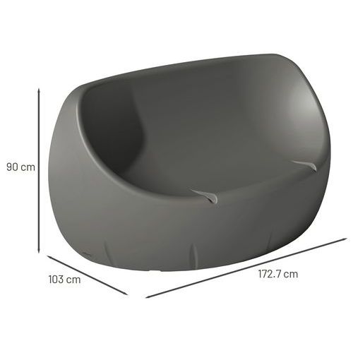 Assise très confortable. En polyéthylène rotomoulé teinté dans la masse, épaisseur moyenne 7 mm. Implantation à l'intérieur ou à l'extérieur car le polyéthylène utilisé résiste aux intempéries et aux UV (température : -30°C/+ 60° C). Entretien : nettoyeur haute pression (1 fois/an). 10 coloris standards. Module à lester avec du sable (non inclus) ou à fixer au sol avec des platines de fixation (4 zones d'ancrage) + tiges filetées en option. Autres RAL standards sur demande. Fabriqué en France Garantie client : 5 ans