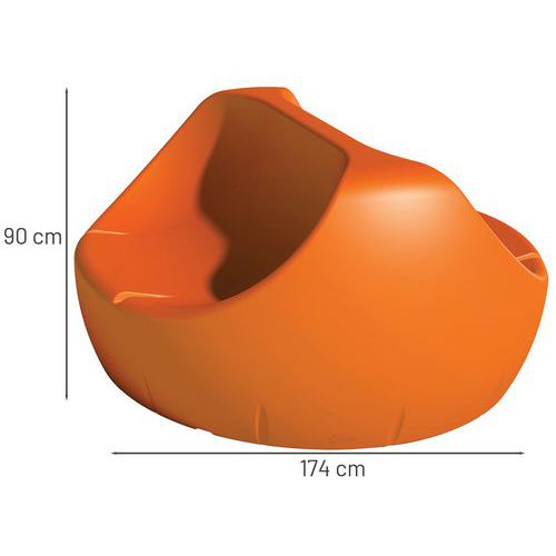 En polyéthylène rotomoulé teinté dans la masse, épaisseur moyenne 7 mm.