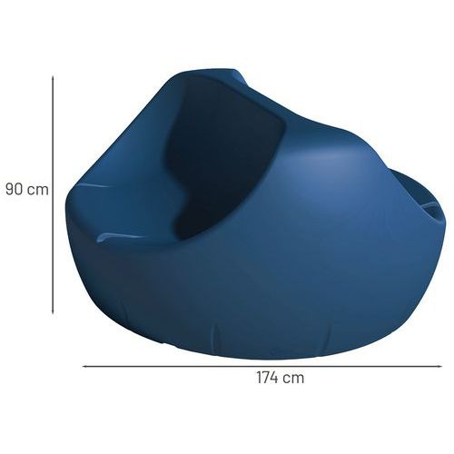 En polyéthylène rotomoulé teinté dans la masse, épaisseur moyenne 7 mm.