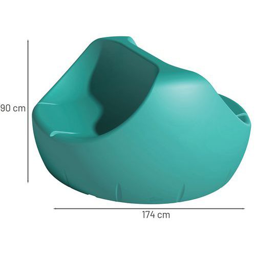 En polyéthylène rotomoulé teinté dans la masse, épaisseur moyenne 7 mm.