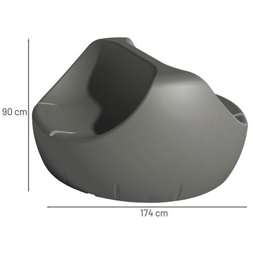 En polyéthylène rotomoulé teinté dans la masse, épaisseur moyenne 7 mm.
