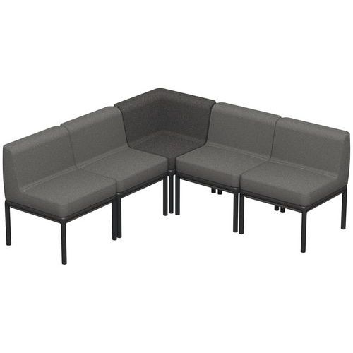 La gamme est construite sur le principe d’une structure métal carrée en 60x60 cm dans laquelle viennent s’insérer plusieurs types de coussins d’assise.