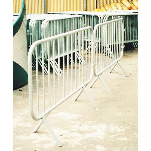 Légères et peu encombrantes. Barrières faciles à déplacer. Pieds robustes fixés double soudure Stockage au carré possible. Barrières 14 barreaux : conformes aux normes de police française. Hauteur sans pieds de 83 cm. Fabriqué en UE Garantie client : 3 ans