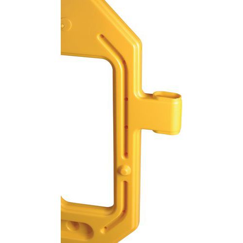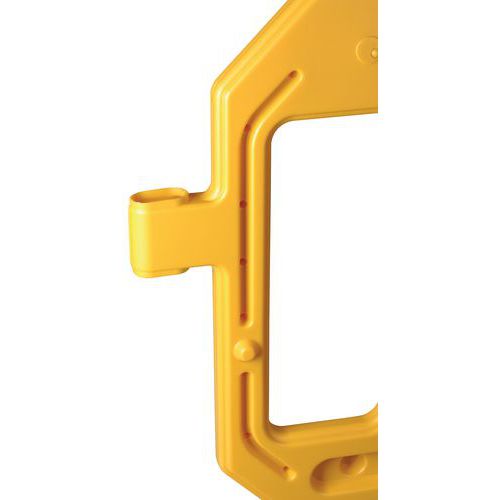 Barrière de protection modulaire, idéale pour bloquer des espaces temporairement. Équipée de manière standard d'un crochet et d'un oeillet permettant de relier plusieurs barrières entre elles, en ligne ou en carré. Possède des bandes auto-réfléchisantes pour une visibilité optimale. Grande stabilité grâce à ses large pieds qui peuvent être tournés pour faciliter le stockage. Un support de stockage et de transport est disponible séparément.