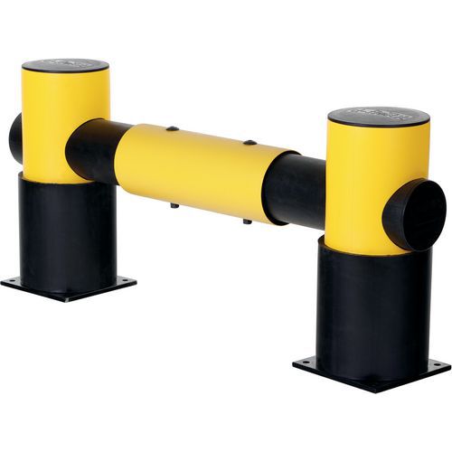 Barrière de rayonnage spécialement conçue pour absorber les chocs causés par des collisions avec des appareils de manutentions. Matière non corrosive pour utilisation en extérieur et intérieur. Pour extérieur et intérieur. Résistant aux rayons UV et aux produits chimiques high-ISO/TR 10358. Certificat du TÜV. Fabriqué en UE